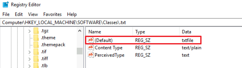 파일 형식은 HKLM\Software\Classes\ 레지스트리에서 확인 가능하며, txt 파일을 타겟으로 실습해보자.